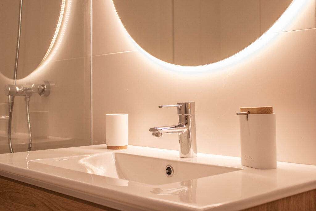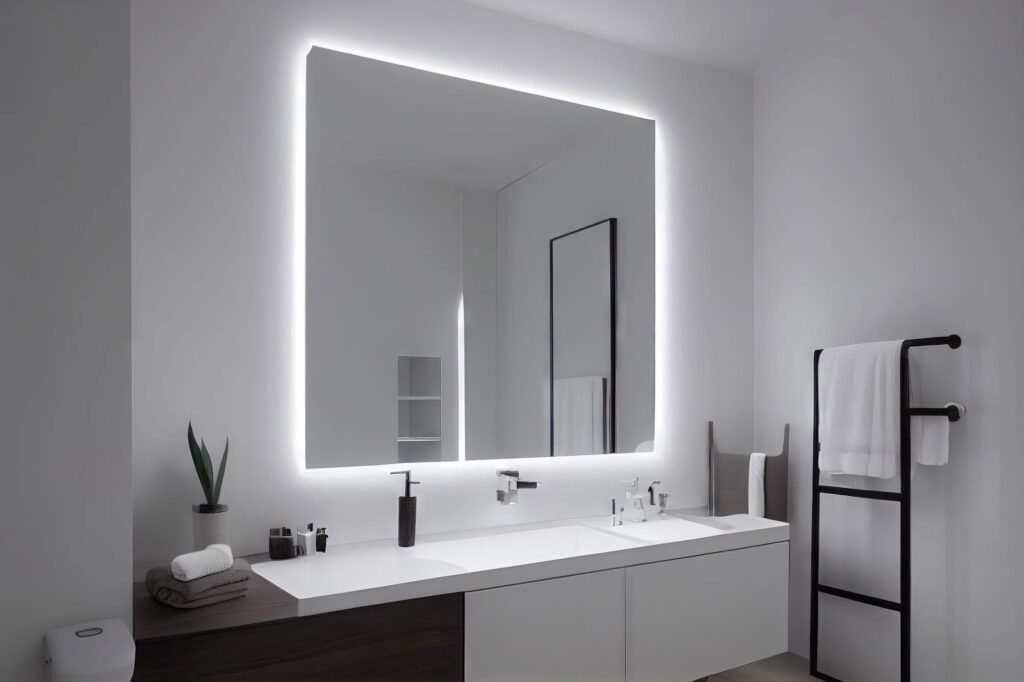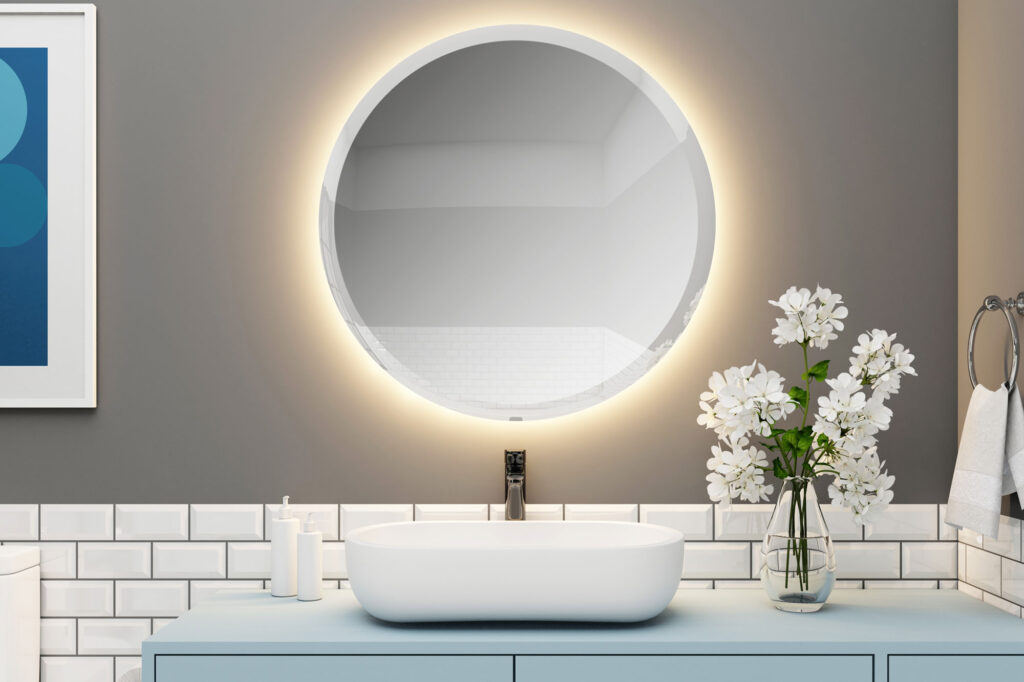 Create a modern and luxurious ambiance with backlit mirrors. These mirrors feature integrated LED lighting around the edges, creating a beautiful halo effect. The soft, diffused light enhances the overall atmosphere of the bathroom and provides functional lighting for daily grooming tasks. Some backlit mirrors offer additional features such as touch controls, color temperature adjustment, and even built-in defoggers to ensure clear reflection even in steamy conditions.